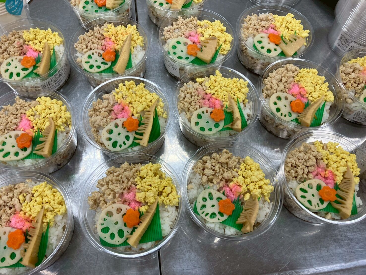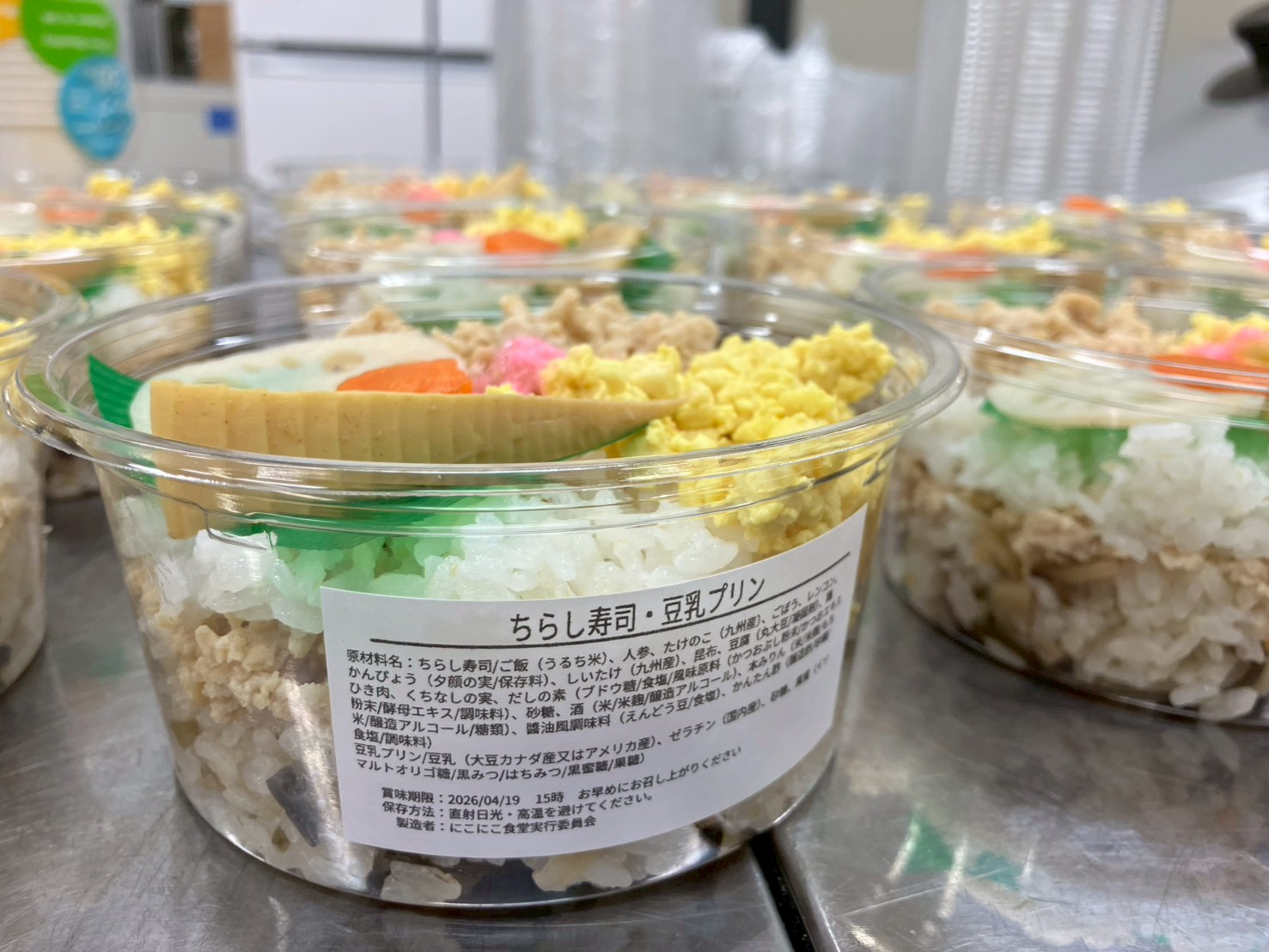 お祝いの気持ちを込めて、メニューは『カップちらし寿司&豆乳プリン』です☺️❣️