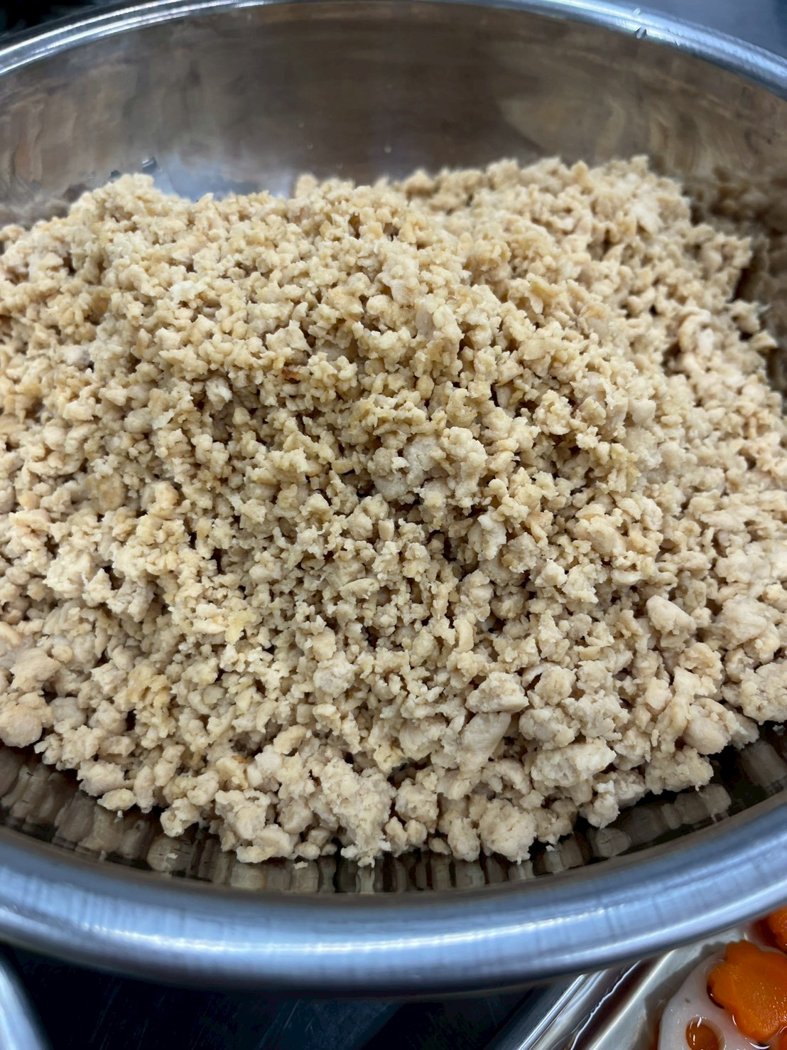 二層目には鶏そぼろ。シンプルな味付けですが旨味は充分👍
